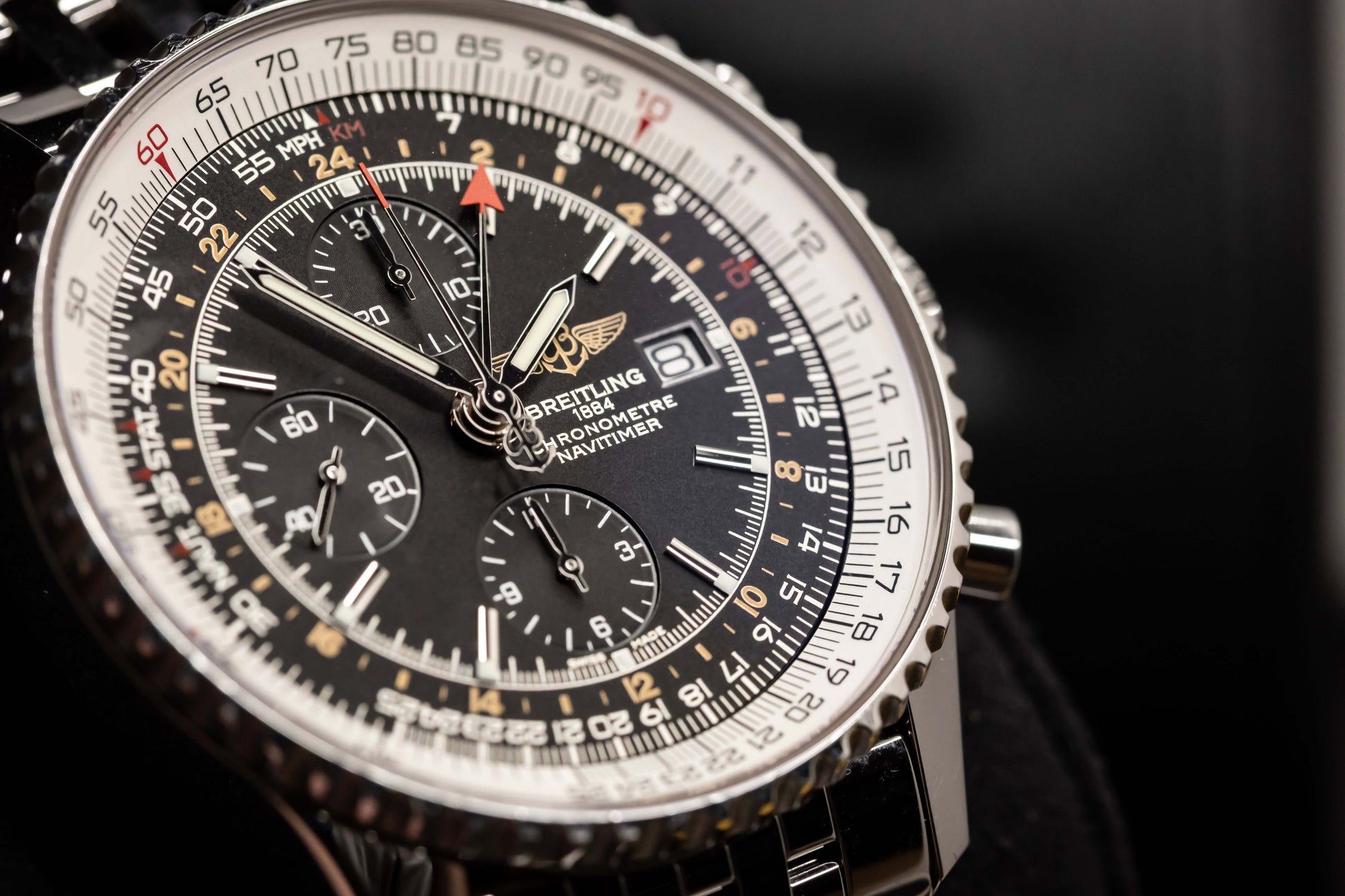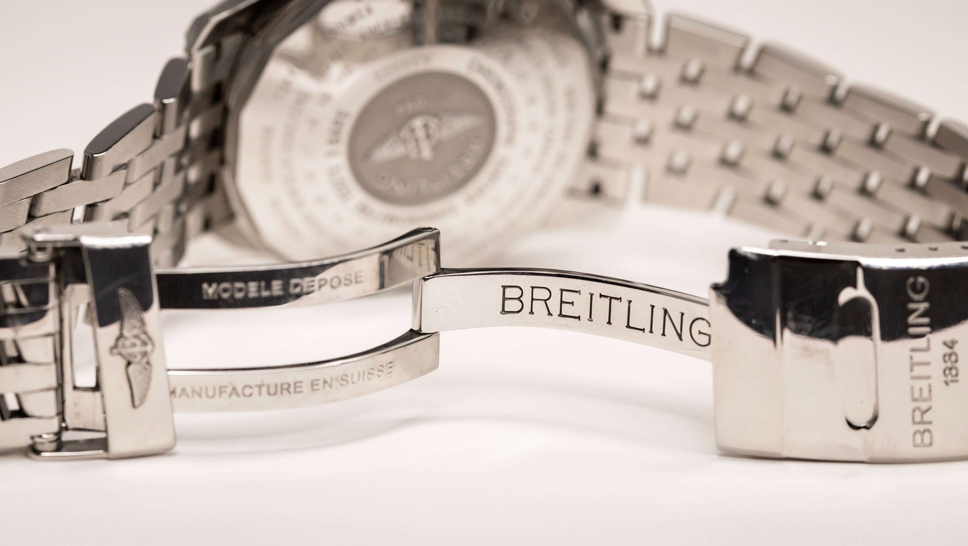 • Bracelet: Stainless Steel Navitimer Link Bracelet with Folding Clasp