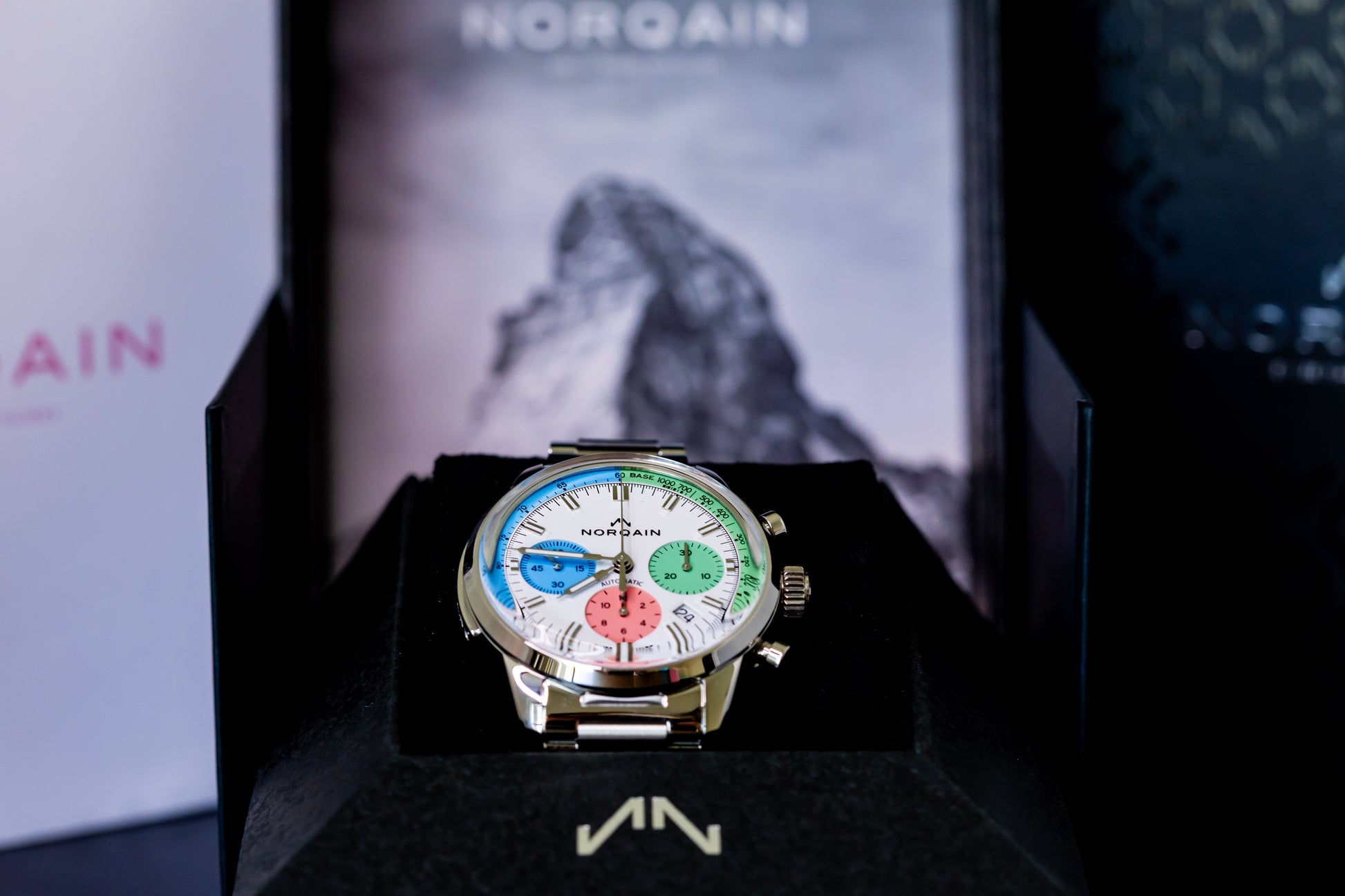 This rare variant features a beautifully executed ice cream-inspired color palette, combining soft pastel tones with vintage chronograph styling. The result is a watch that stands out in the best possible way — playful, unique, and still unmistakably Norqain in its build quality and precision.