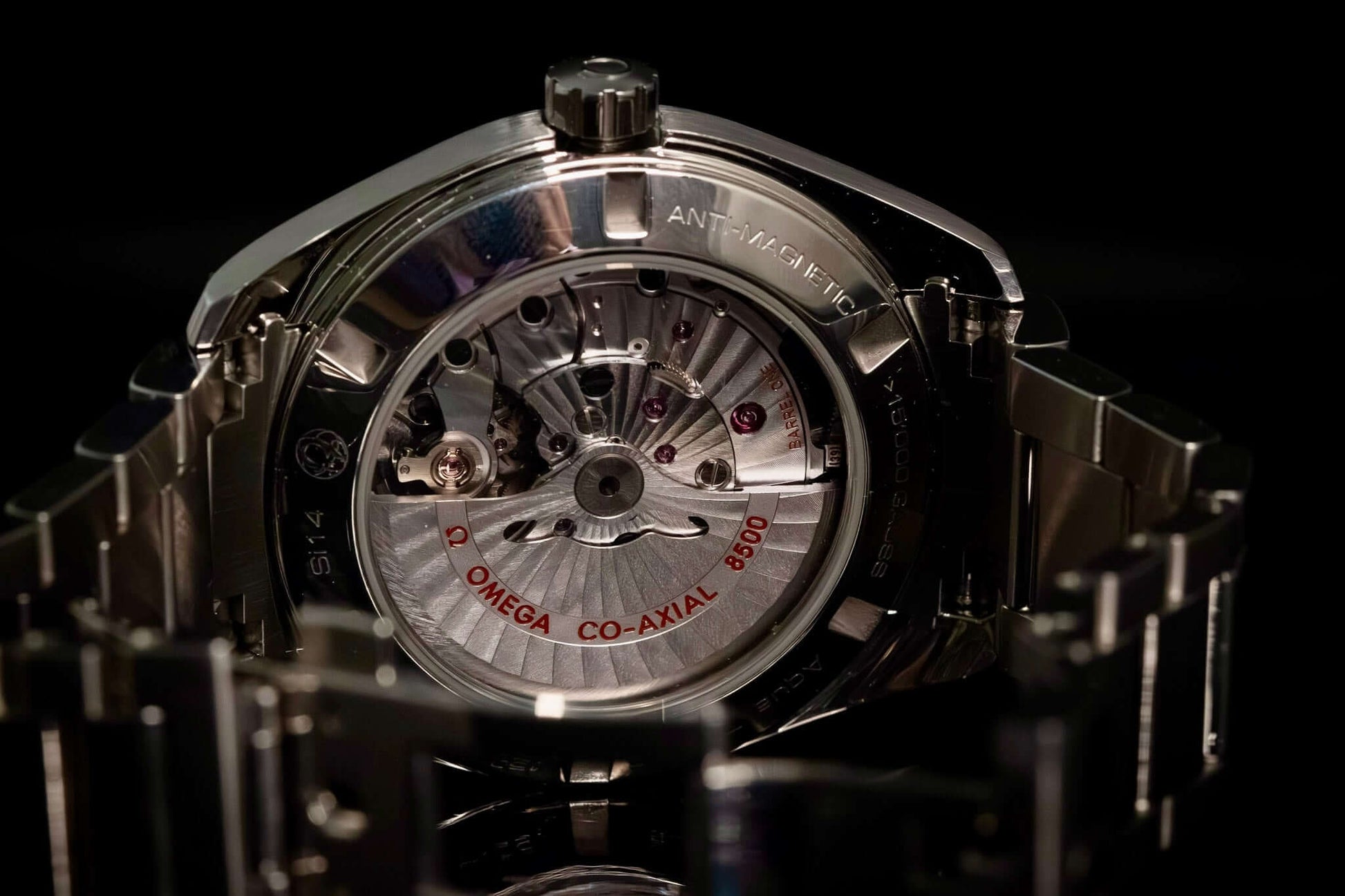 • Movement: Omega Master Co-Axial Calibre 8500 – automatic, resistant to magnetic fields > 15,000 gauss, visible through transparent caseback